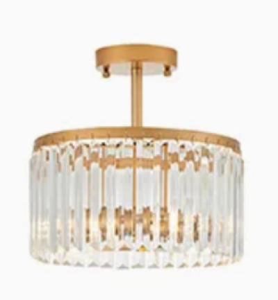 Crystal Ceiling Light Fixture, 6-Lights Gold Crystal Chandelier for Dining Room Light Fixture, Modern Semi Flush Mount Ceiling Light for Kitchen Bedroom Hallway Entryway Closet Living Room