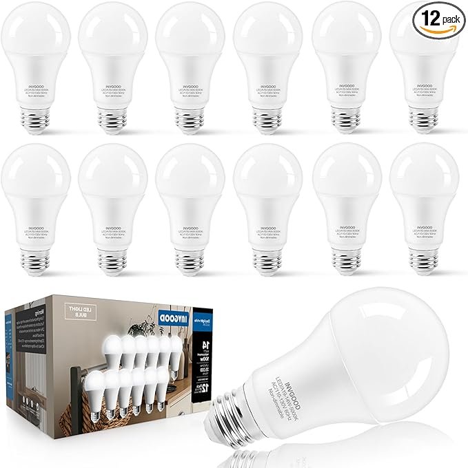 14W A19 LED Light Bulbs 100-125 Watt Equivalent, 12 Packs 1600LM Bright 5000K Daylight White LED Bulbs, E26 Medium Base Bulbs for Home Office Bedroom Kitchen, CRI 90+, Non-Dimmable