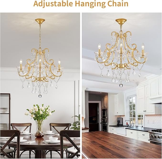 - High-Quality Materials: Bedroom chandelier light is crafted from an anti-rust gold painted finish and crystal materials, lasting durability while shining brightly. The durable materials are resistant to cracking and deformation, making it both a source of lighting and a beautiful decoration for your home.