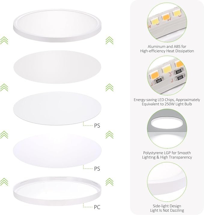 - 【Multiple scene usage】Different color temperatures of ceiling lights are suitable for different scenes, and you can freely match them according to your wishes. 3000K soft warm white is suitable for bedrooms, 4000K natural white is very suitable for kitchens and bathrooms, and 6500K super white is bright enough for living rooms and offices.