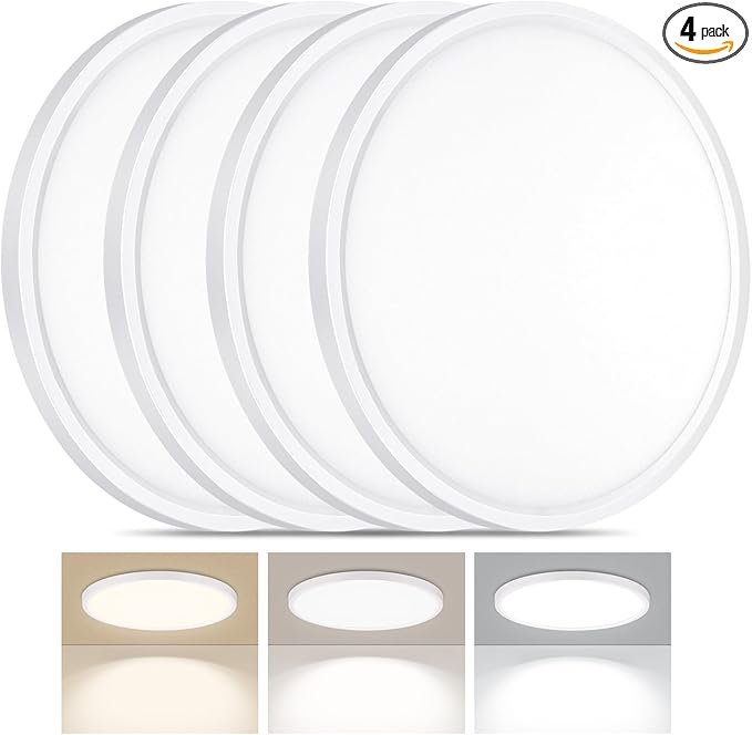 4 Pack LED Flush Mount Ceiling Light, 24W Ultra Thin Round White 3000k/4000k/6500k 3 Color Temperatures Adjusted 12 Inch Modern Ceiling Lights for Bedroom Bathroom Kitchen (4)