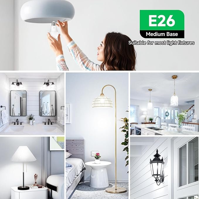 - Easy Installation & Standard E26 Base: Fits all E26 medium screw-base fixtures. These LED A19 bulbs install instantly in table lamps, ceiling fixtures, bathroom vanities, porch lights, and more. No warm-up time, instant on