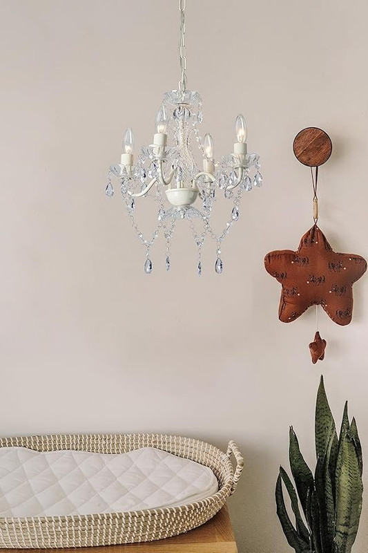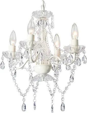 - White Chandelier Modern Style: This mini crystal chandelier combination classic and modern feature, curved arm frame and hanging crystal string perfect match,create an elegant atmosphere and make a shiny point for your home decor,acrylic chandelier will be bound to add an incredible touch of bright color to your home.