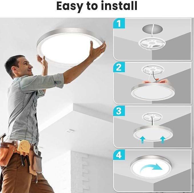 - Easy DIY Installation, No Worries: This high-quality flushmount ceiling light is a breeze to install, thanks to the rotating mounting plate on the base. No more confusion over tedious steps – just a simple, quick setup. And if any issues arise, our responsive support team is just a message away to assist you. Enjoy the convenience of a hassle-free lighting upgrade