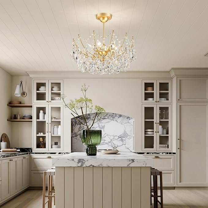 - Suitable Dimension: Modern close to ceiling light fixtures are D19.7” H19.2\”. Crystal ceiling light fixture work well with both medium and high ceilings, offering a balanced presence and charming focal point in any room.