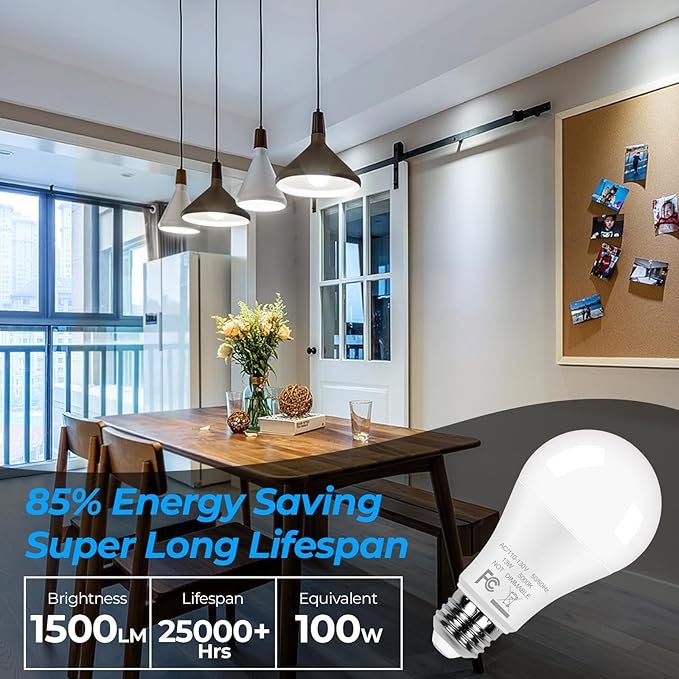 - Super Brightness and Energy Saving: 13W A19 LED light bulbs emits 1500Lumens high brightness at 5000K daylight white, creating a clean and energetic atmosphere. The LED bright light bulb is equivalent to a traditional 100W incandescent bulb, greatly save electricity while providing excellent lighting
