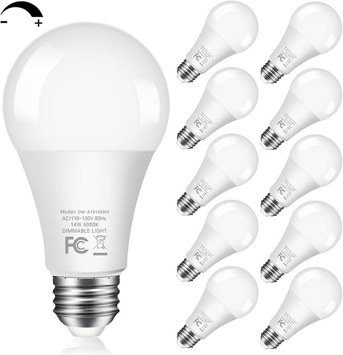 14W 1500LM Dimmable LED Light Bulbs 100 Watt Equivalent Bright A19 LED Bulbs with E26 Medium Base Daylight White 5000K CRI 90+ for Home Office Bedroom Kitchen, 10 Packs
