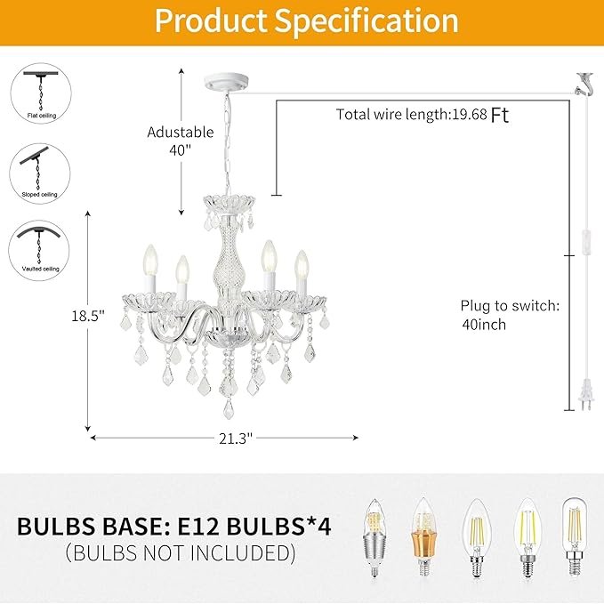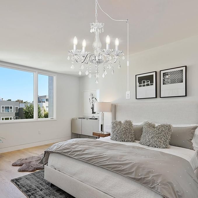 - 【Crystal Chandlier Application】This mini plug in crystal chandelier pendant light is a perfect for any space indoor. which will be warm ambience and creates an attractive lighting effect across the ceiling. Recommend using in living room,dining room,kitchen island, bedroom,hallway,bathroom,patio,office,etc.