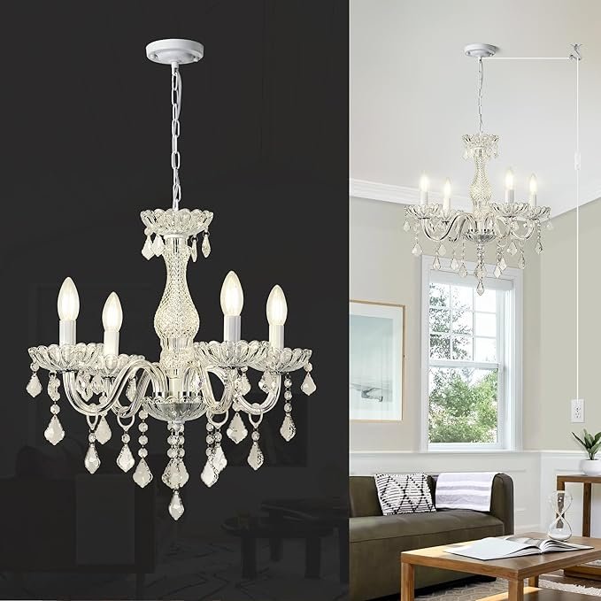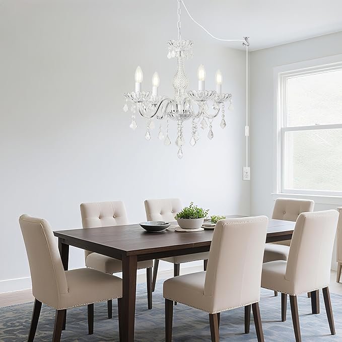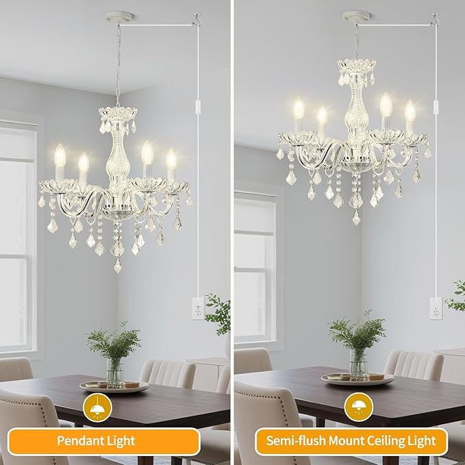 Plug in Chandelier,4-Light Farmhouse Crystal Chandelier for Dining Room Lighting Fixtures with On/Off Switch,Modern Pendant Light for Bedroom, Foyer, Hall, Kitchen, Living Room and Entryway