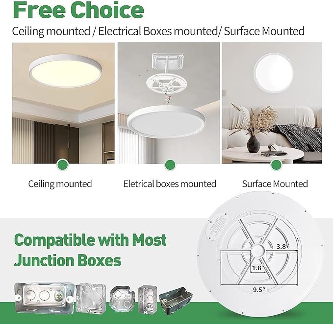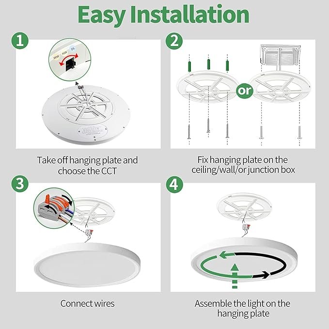 - CCT Selectable:This flush mount ceiling light fixture has 3 color temperatures optional:3000K/4000K/6000K, you can set your favorite color directly on the fixture before installation.