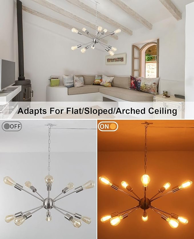 - 💡【Sputnik Chandeliers Light Fixture】 LASENCHOO plug in ceiling lights adopts simple iron style and an artificial satellite shape design, which will update your home with its retro, vintage, mid century or modern, industrial and eye-catching design.