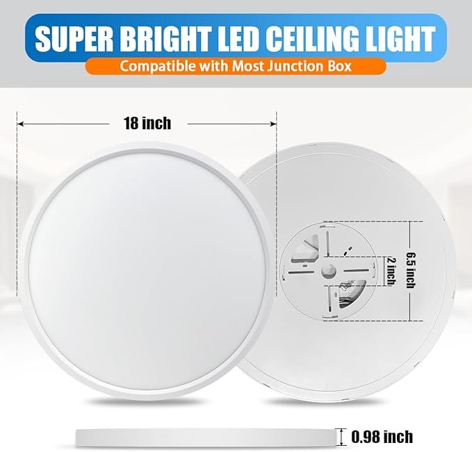- ENERGY SAVING & LOWER MONTHLY ELECTRICITY BILL-Flush mount ceiling light 18 inch 36W 4650lm is the best alternative to traditional 120W incandescent bulbs. Lower power consumption with up to 85% percent energy savings. Ceiling light fixtures can reduce electricity bills, and higher bright output is the best choice for home living.