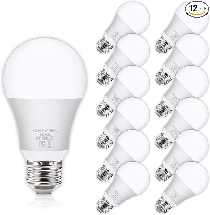 Yochoice 12Pack A19 LED Light Bulbs 100 Watt Equivalent 5000K Daylight White, No Flicker E26 Medium Screw Base Bulbs, 1100Lumens, Non Dimmable
