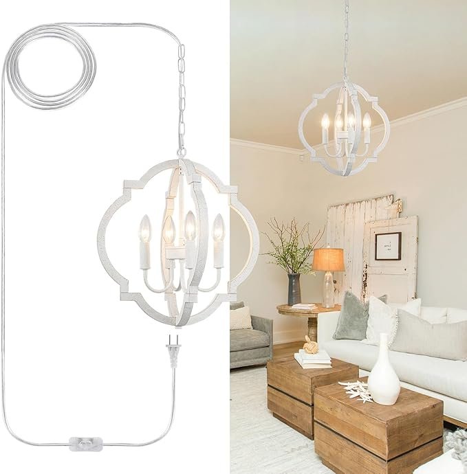 - ✅【Plug In Chandelier for Easy Installation】This farmhouse pendant light features a 16.4ft power cord and a 4.92ft (1.5m) adjustable hanging chain, allowing for quick height adjustment and wall outlet plug-in—no need for complex ceiling wiring or junction boxes.